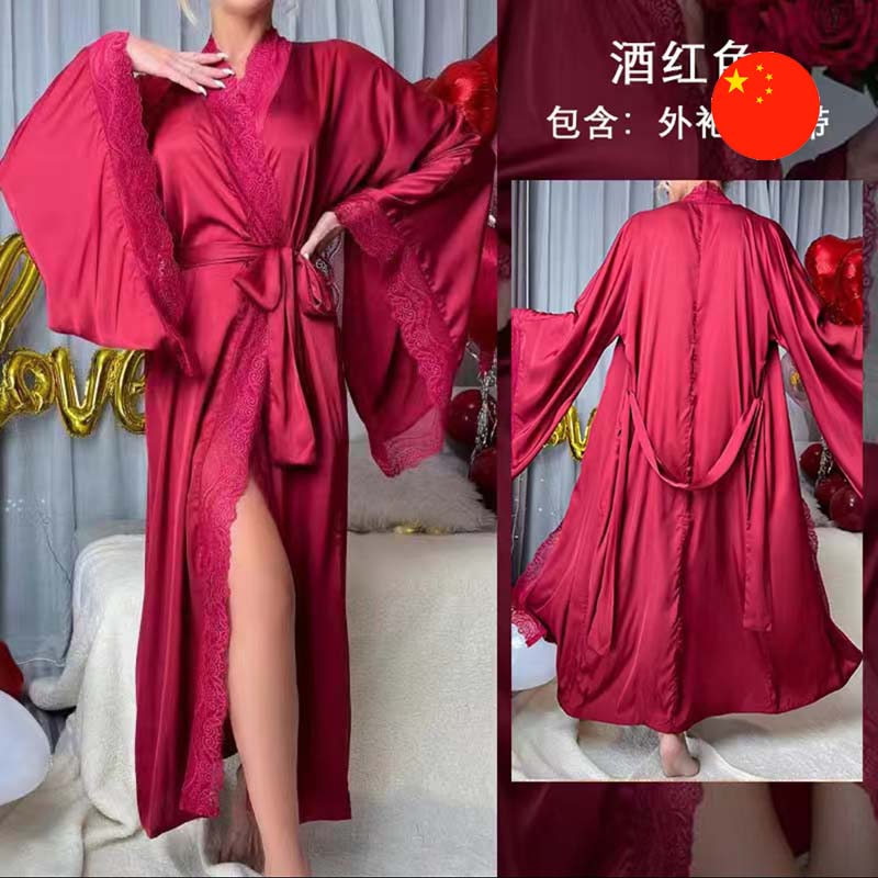 Aýratynlyklary: Elegant we stil halat. Bedene örän ýakymly, ýokary hilli ýüpekden taýýarlanan. Ýeňleri we gyralary nepis kružewa bilen bezelen. Öýde dynç almak, romantik keşp döretmek ýa-da sowgat hökmünde ajaýyp sazlaşar. Toplumda ony sazlamak üçin guşak bar.