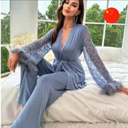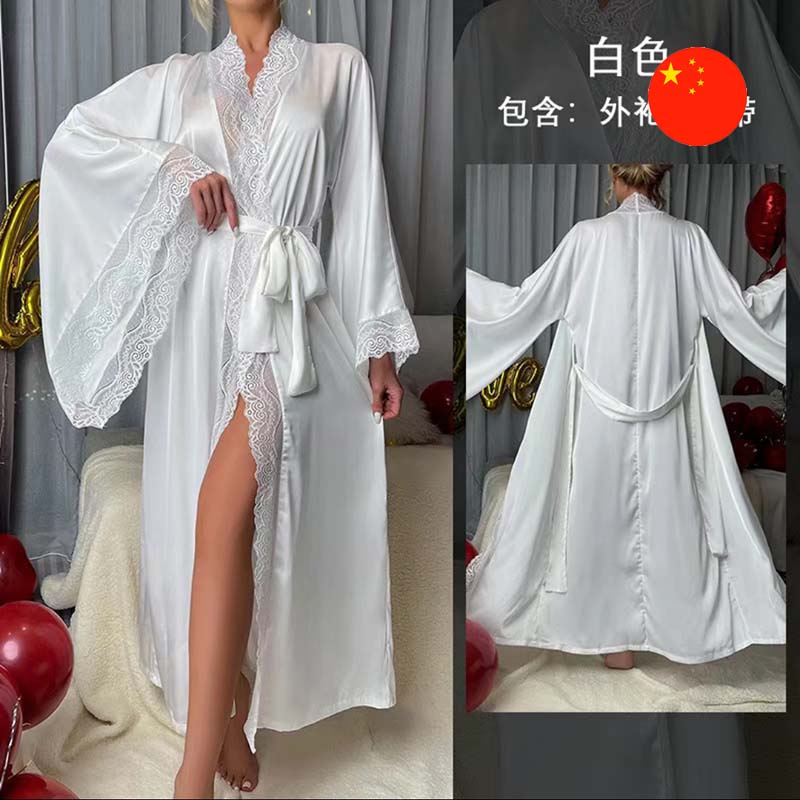 Aýratynlyklary: Elegant we stil halat. Bedene örän ýakymly, ýokary hilli ýüpekden taýýarlanan. Ýeňleri we gyralary nepis kružewa bilen bezelen. Öýde dynç almak, romantik keşp döretmek ýa-da sowgat hökmünde ajaýyp sazlaşar. Toplumda ony sazlamak üçin guşak bar.