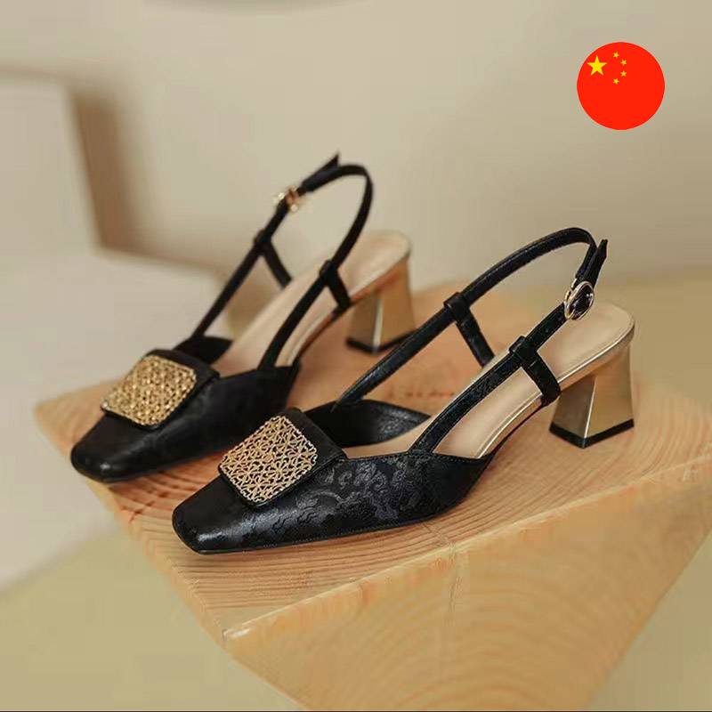 • Aýratynlyklary: Göz gamaşdyryjy, kümüş reňkli, fakturaly metal ýalpyldyly slingbek köwüşleri. Model altyn reňkdäki durnukly kwadrat ökjeli. Burnunda paýetkalar bilen bezelen, nazary özüne çekýän uly kwadrat bezeg ýerleşdirilen. Agşam oturylyşyklary, baýramçylyklar we dabaraly çäreler üçin ajaýyp saýlaw.