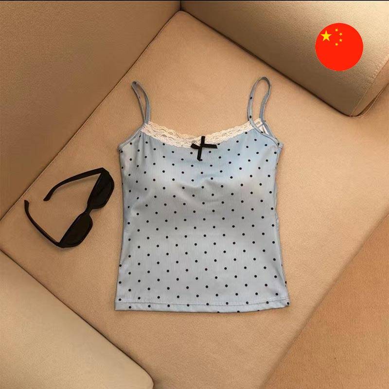 • Aýratynlyklary: Inçe bretelli ýeňil tomusky top. Ownuk nokatly nagyşlar we kružewa bilen bezelen. Toplumda döş üçin goşmaçalar bar.