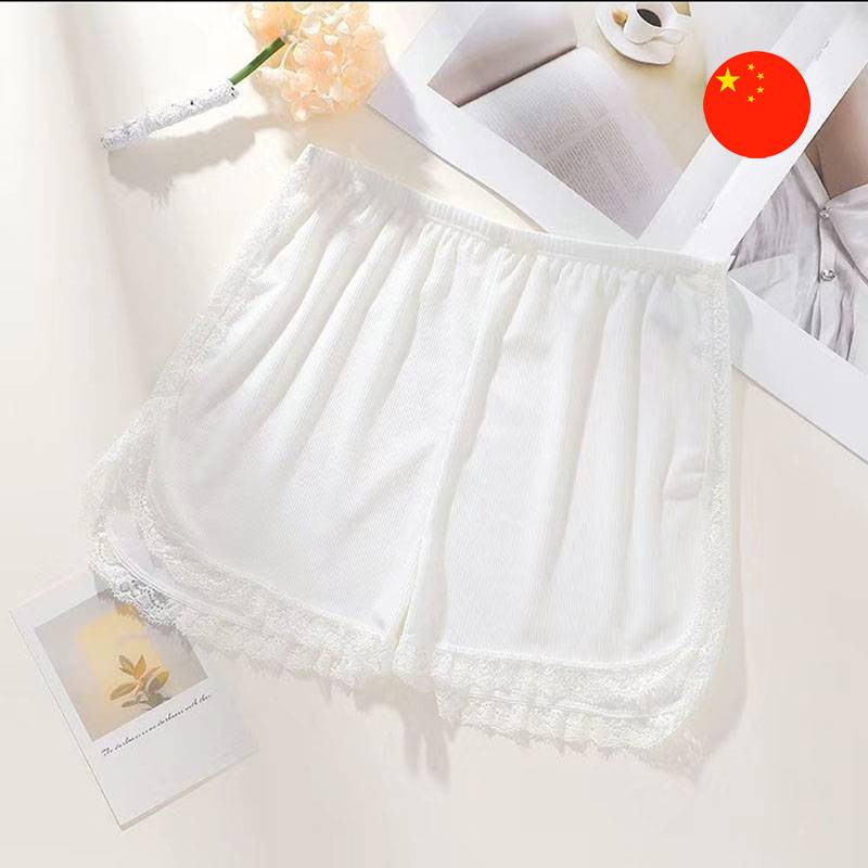 • Aýratynlyklary: Ýeňil we oňaýly öý şortlary. Bežewyý reňkde ýerine ýetirilen we gyrasy ak kružewa bilen bezelen. Uklamak we dynç almak üçin ideal.