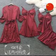 Zenanlar üçin elegant atlas pižama 4-li toplumy