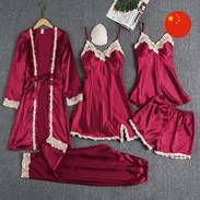 Zenanlar üçin elegant atlas pižama 5-li toplumy