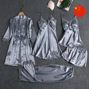 Zenanlar üçin elegant atlas pižama 5-li toplumy