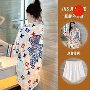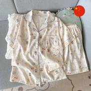 Aýratynlyklary: Dynç almak üçin ideal, zenanlar üçin oňaýly we rahat pižama. Ol ýumşaklygy, howa geçirijiligini we rahatlygy üpjün edýän hilli materialdan taýýarlandy. Mata tüýlenmeýär we reňki solmaýar, bu bolsa çydamlylygy üpjün edýär. Pižamanyň uzyn ýeňli we balakly nusgawy biçüwi bar. Pijama näzik we rahat görnüş berýän owadan çigildem printli, stilli reňki bar.