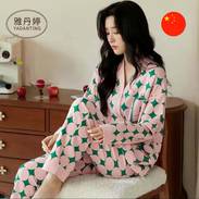 • Aýratynlyklary: Ajaýyp gijeki eşik we ýeňil dony öz içine alýan ajaýyp uky toplumy. Beden atlas matasyna ýumşak we ýakymly bolup, ajaýyp rahatlyk we ýeňillik berýär. Gijeki eşigiň korpusyna we donuň ýeňlerine krujkalar özüne çekijilik we aýallyk goşýar.