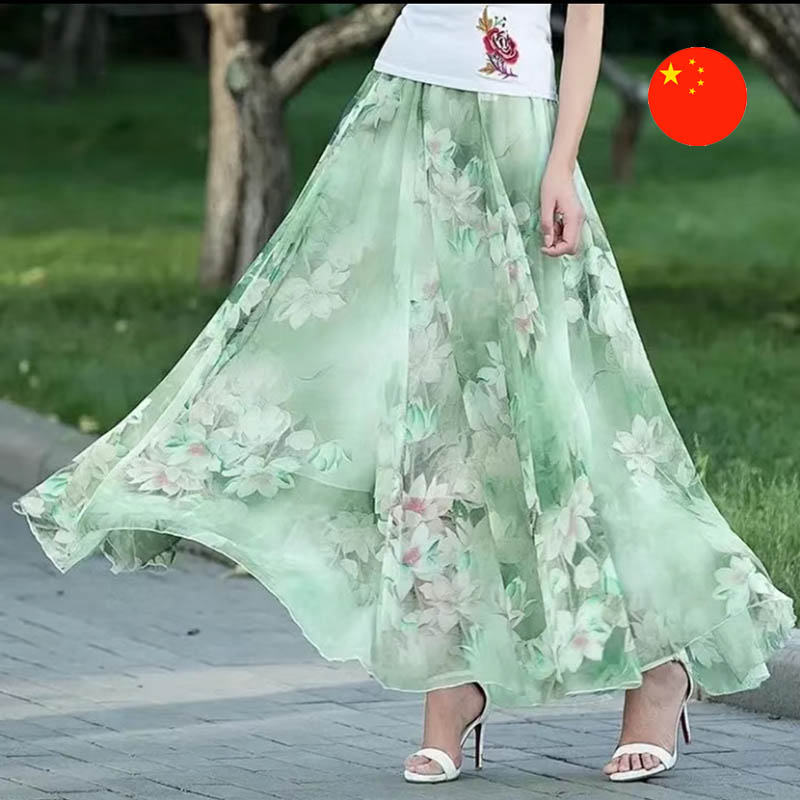 Aýratynlyklary: Tomusky uzyn şifon yubka. Material ýeňil we howaly, hereketi çäklendirmeýär. Zenanlar üçin tomusky obrazyny görkezmek üçin ajaýyp.