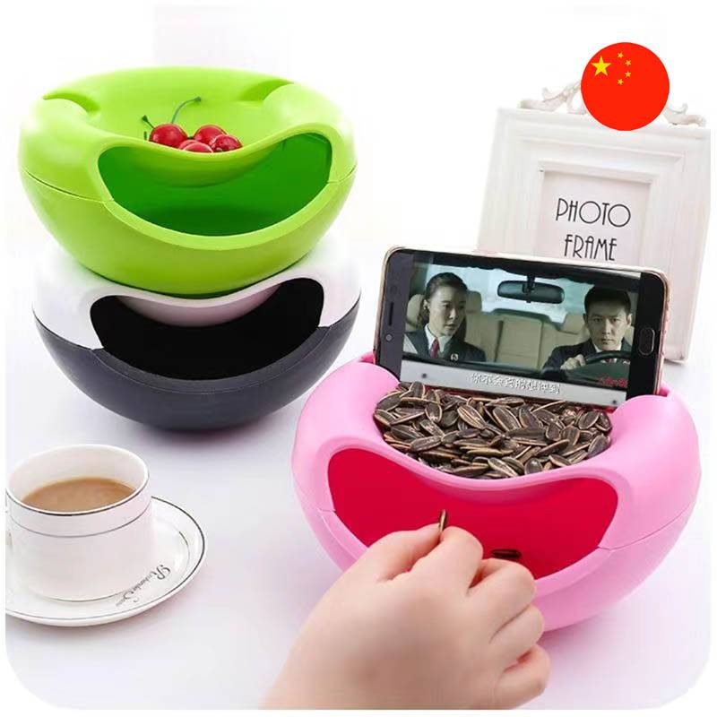 • Aýratynlyklary: Telefon üçin köp wezipeli tabakly podstawka, nahar söýüjiler üçin ajaýyp aksessuar. Iki gatly bu tabak, halaýan naharlaryňyzdan filmlere ýa-da teleseriallara tomaşa etmezden lezzet almaga mümkinçilik berýär. Ýokarky bölüme hoz, tohum, süýji ýa-da miweleri goýup bilersiňiz, aşaky böleginde bolsa gabyk ýa-da süýji önümleri ýaly zibilleri aňsatlyk bilen taşlap bilersiňiz. Üýtgeşik dizaýn, ony smartfonyňyz üçin stend hökmünde ulanmaga mümkinçilik berýär.
