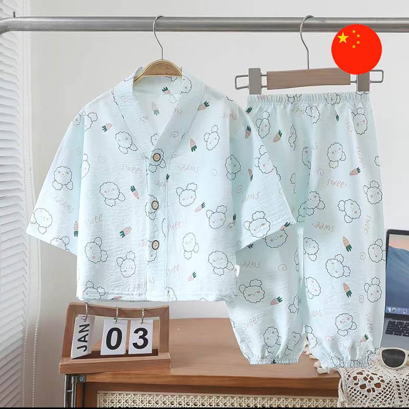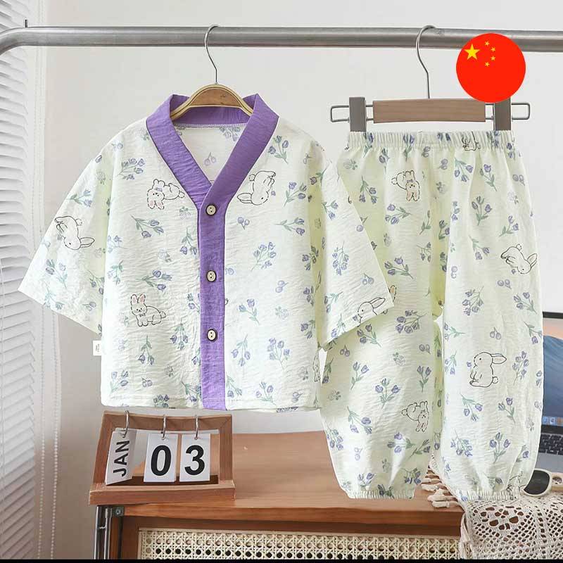 Aýratynlyklary: Bu ýeňil çagalar eşikler toplumy, yssy günler üçin iň amatly saýlawdyr. Softumşak we dem alýan matalardan ýasalyp, ýakymly çap bilen bezeldi. Toplumda boş V ýakaly köýnek we amatly elastik balak bar.