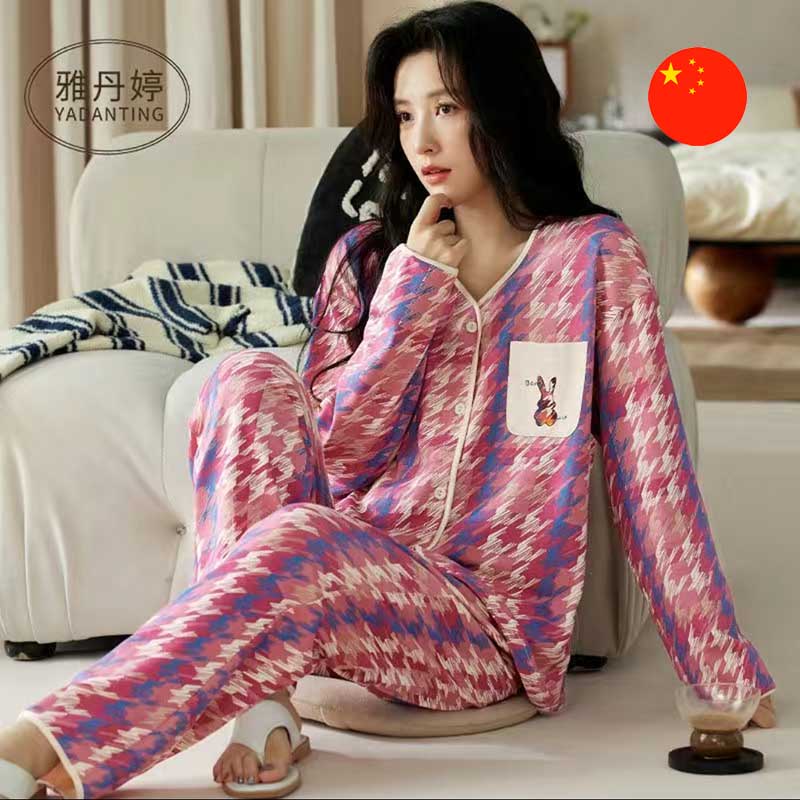 • Aýratynlyklary: Öýüň ajaýyp görnüşi üçin ýumşak we amatly pižama. Uzyn ýeňli köýnek we balak toplumy rahatlygy üpjün etmek we deriniň dem almagyna mümkinçilik döretmek üçin ýasalýar. Moda çap, dynç alşyňyza oýnawaçlyk goşar. owadan gijeler üçin ajaýyp saýlaw.