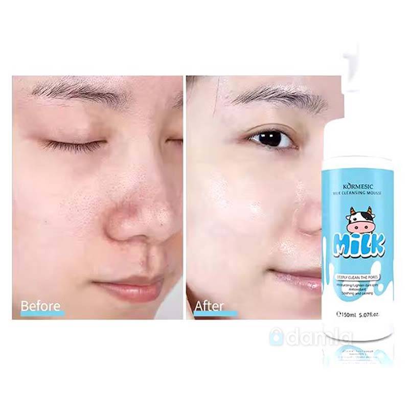• Aýratynlyklary: Kormesic süýdüni arassalaýan deriňizi ýumşak we täsirli arassalamak üçin ýörite düzülendir. Süýt belogyny öz içine alýan ýeňil köpük gurluşy, deriňizi guratman, makiýažy we kirleri arassalaýar. Gözenekleri arassalamaga kömek edip, gara nokatlaryň we düwürtikleriň döremeginiň öňüni alýar.