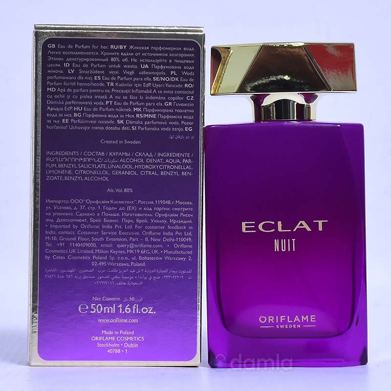 • Esasy bellikleri: Iň ýokary bellikler: Böwürslen (Blackberry), Şetdaly (Peach), Gök çaý (Blueberry - käbir çeşmelerde); Orta bellikler: Ýasemin (Jasmine) – adatça Eclat yslarynyň merkezinde durýar, Gülgüne gül (Rose Absolute); Esasy bellikler: Paçuli (Patchouli), Musk, Wanil (Vanilla).