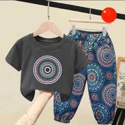 • Aýratynlyklary: Ýagty stil we nagyşar bilen bezelen kelte ýeňli köýnek we şortikdan ybarat komplekt eşik. Komplektda tomus günleri üçin ýasalyp şadyýan atmosferany döredýär. Oýunlar we işjeň dynç alyş wagtynda rahatlygy we hereket erkinligini üpjün edýän ýeňil we dem alýan matalardan ýasalýar.