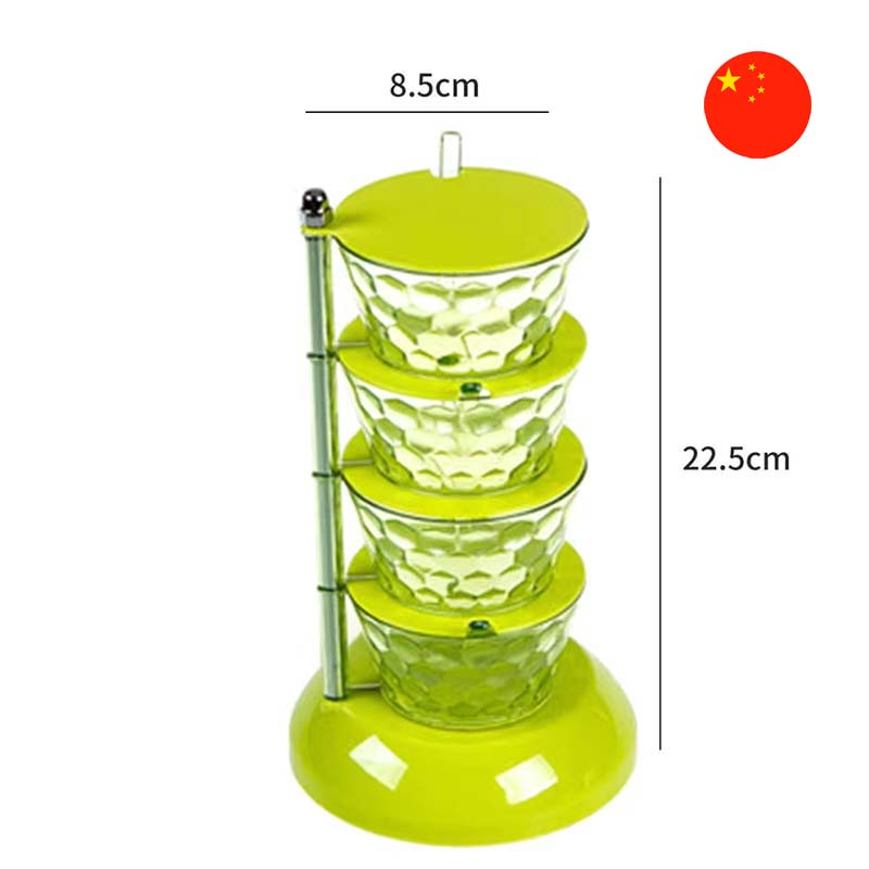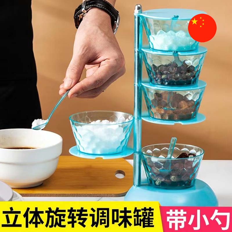 Aýratynlyklary: Bu kiçi we döwrebap toplum duzy, şekeri, burçy, ysly otlary spesiýalary ýa-da çaýy saklamak üçin iň oňat çözüwdir. Ol wertikal gurluşy sebäpli ýer tygşytlaýar we aýlanýan diregi podstawkasy hem-de aýry-aýry çemçejikleri sebäpli ulanmak üçin amatlydyr.