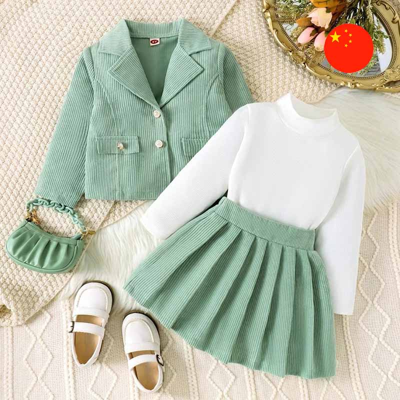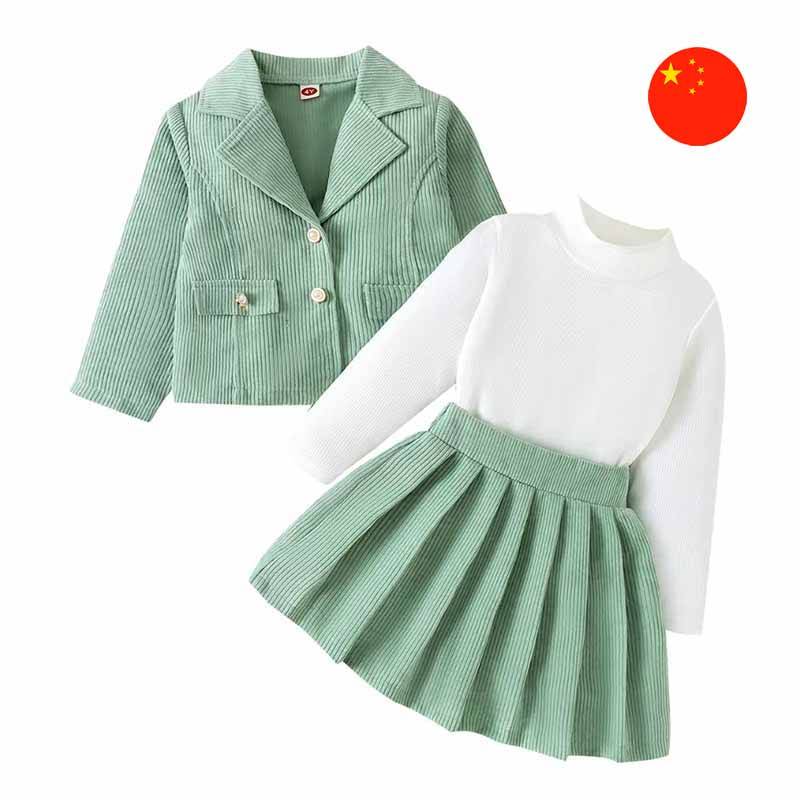 • Aýratynlyklary: Gyzjagazlar üçin owadan komplekt gara ýakaly penjekden we ýubkadan ybarat bolup, olar rubçik galyň matadan ýasalandyr. Toplum uzyn ýeňli trikotaž balak ýakaly wadalazka goşmaça doldurýar. Güýz we gyş pasyllarynda geýmek üçin örän laýykdyr.