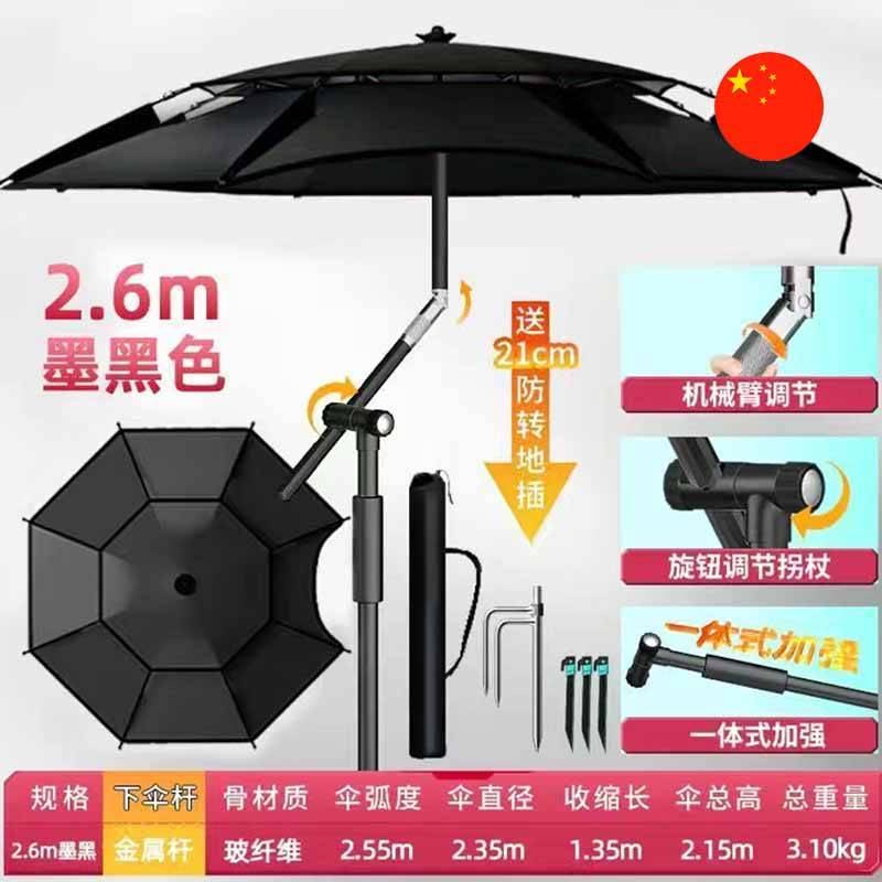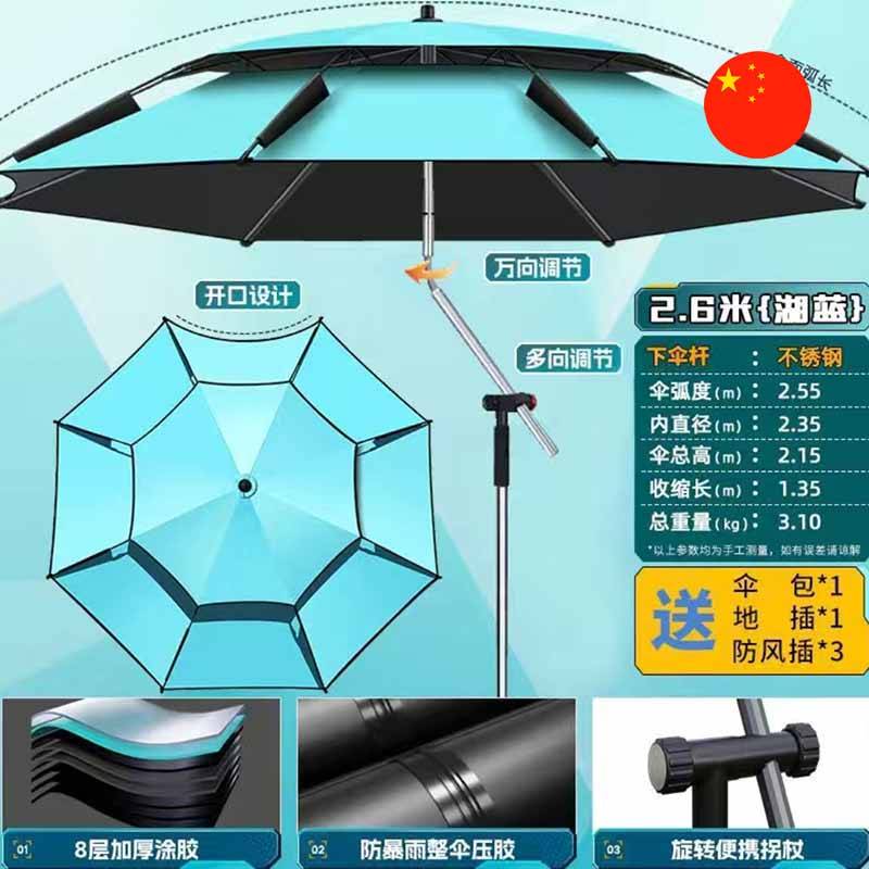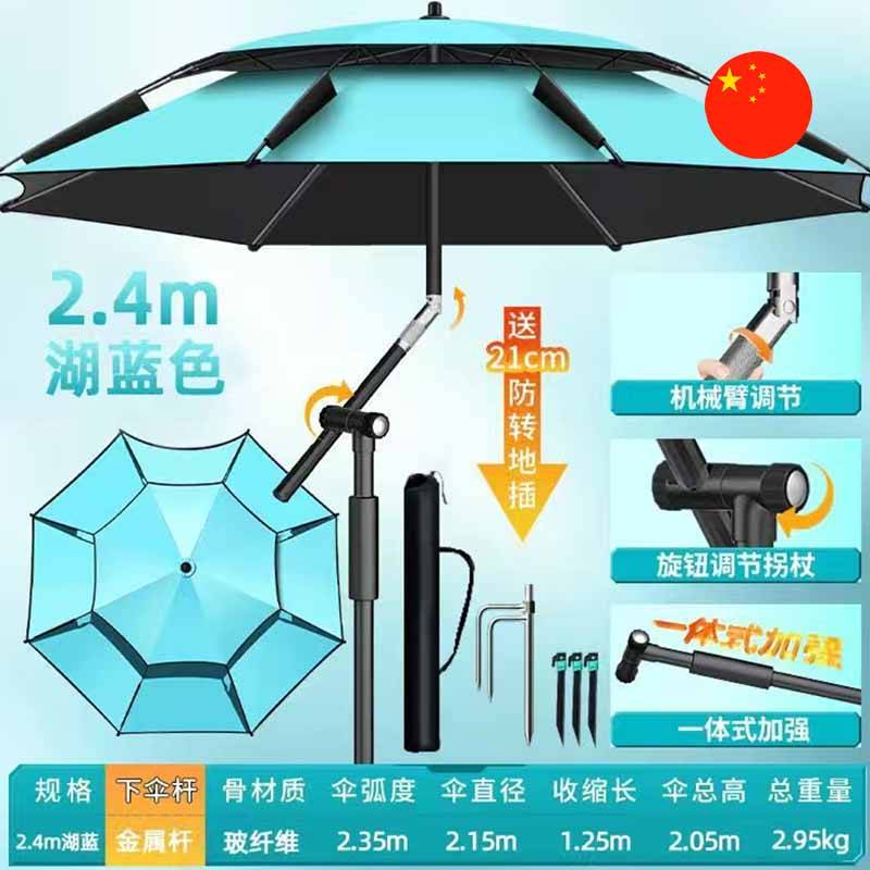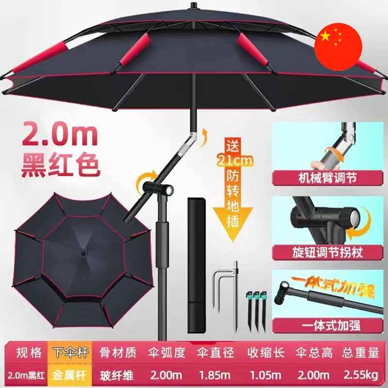 • Aýratynlyklary: Mehaniki sazlama (regulirlemek) bilen 2 m Professional Balyk tutýan/Kenar üçin Zont. Stersen metal garyndysyndan, spislary bolsa aýna süýüminden (fiberglass) ýasalan, bu bolsa berkligi we ýele çydamlylygy üpjün edýär. Toplumda (komplektde) topraga ynamly (berk) oturtmak üçin güýçlendirilen uzynlaşdyrylan gazyk we ýelden goraýjy berkidijiler (gazyklar) berilýär.