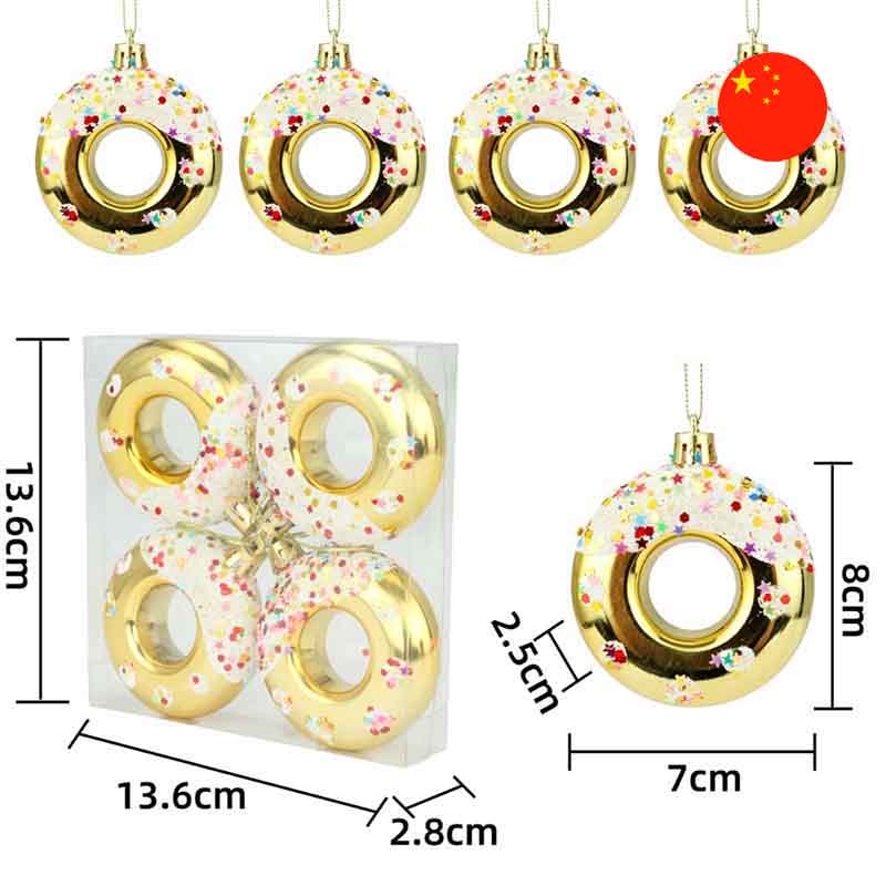 • Aýratynlyklary: Baýramçylyk arçasy owadan we şadyýan görnüşe getiriň! Bu 8 sm diametrli, altyn reňkli "Halka" görnüşli bezegler toplumy baýramçylyk dekoryňyza ýumor we aýratynlyk goşar. 8 sm diametrli bu bezegler arça agajyň üstünde ýa-da islendik baýramçylyk bezeginde gowy görünýär.