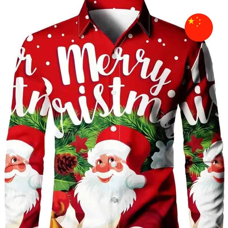 • Aýratynlyklary: Aýaz babanyň, "Merry Christmas" ýazgysynyň we garjagazlaryň (snejinkalaryň) suraty bilen bezelen, uzyn ýeňli, açyk reňkli erkekler üçin köýnek. Täze ýyl dabaralary (weçerkalary) üçin iň laýyk gelýär.